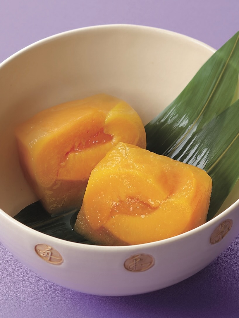 .凰桃果(おうとうか)山形県産の黄金桃をまるごとひとつ包み込んだ贅沢なゼリー。ゼリー部分にも黄金桃のピューレを使用し果実そのものの味わいを引き立てました。艶やかな黄金色に輝く果実は冬の贈り物にも..