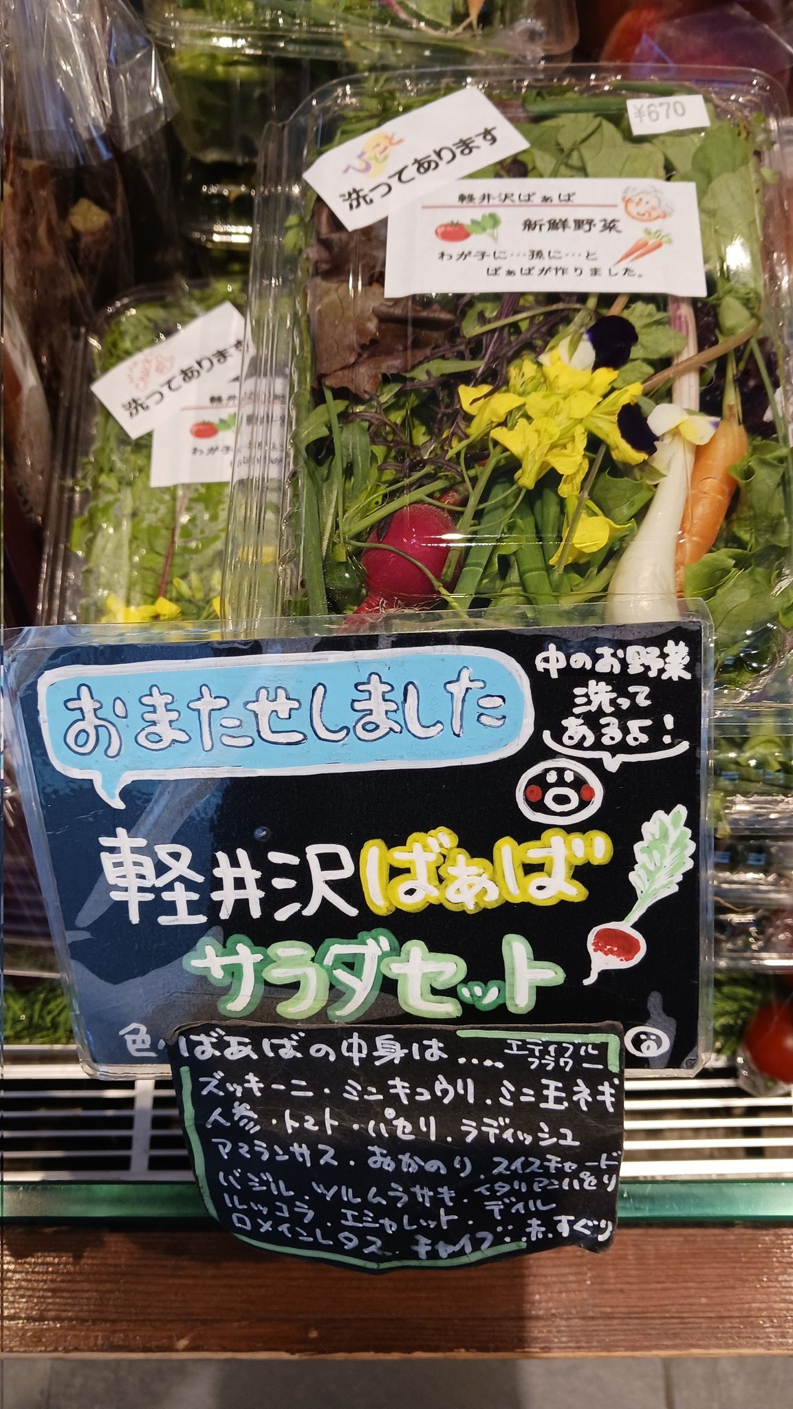 軽井沢ばあばのサラダセット入荷しました。洗ってありますので、このままお使い頂けます。如何でしょうか。皆さまのお越しをお待ちしております。