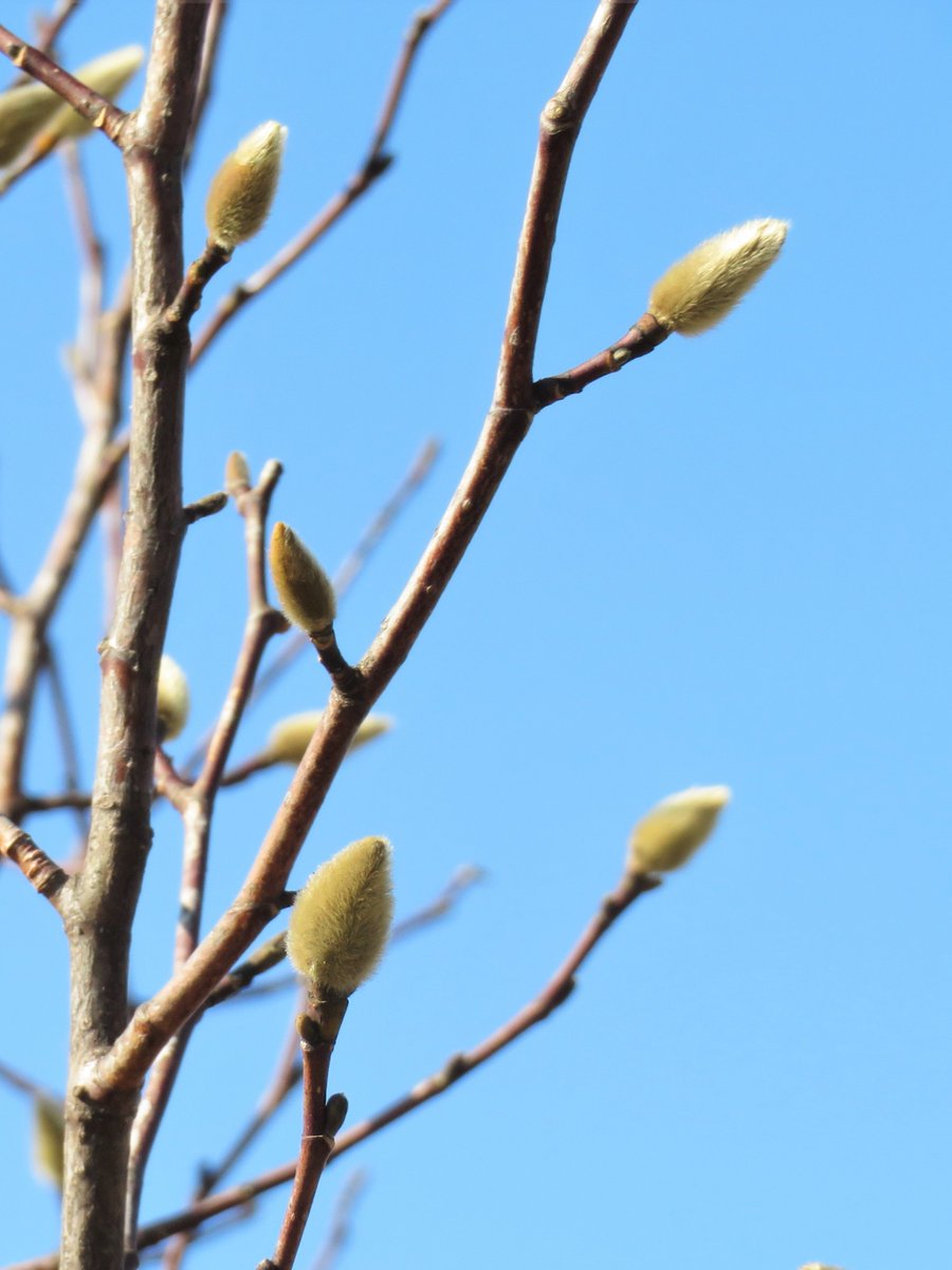 鳥類園などでみられる #コブシ に冬芽が出てきました。 3月に花を咲かせるまで、この姿で休眠します😴 ふさふさの毛に覆われている芽は、まるでコートを着ているようです🧥✨ #葛西臨海公園 #花
