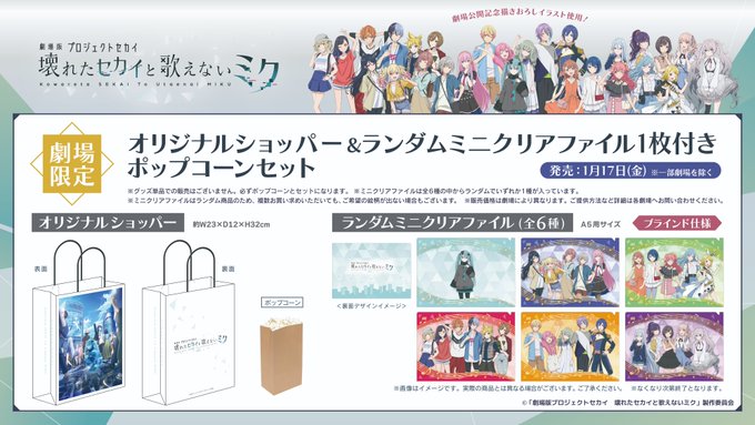 飲食売店の者です『劇場版プロジェクトセカイ壊れたセカイと歌えないミク』劇場限定!“オリジナルショッパー&ランダムミニクリアファイル付き”ポップコーンセット本日から販売しております!数量限定ですのでぜひ..