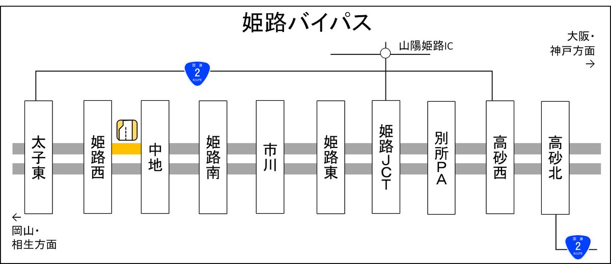 14時15分頃の#事故により、岡山方面行#姫路バイパス#中地(90.2kp)付近、車線規制を行っています。渋滞情報は(https://jartic.or.jp)をご確認下さい。ライブカメラ画像は事務所..