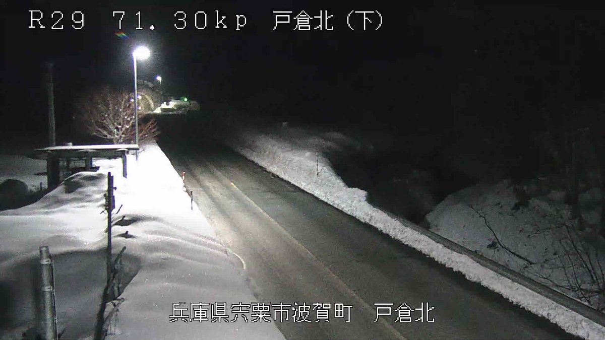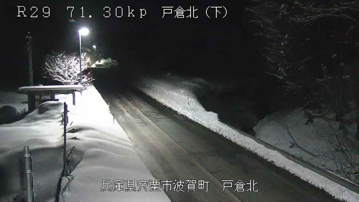 #国道29号積雪・凍結路ノーマルタイヤは法令違反*地面が黒く見えている場所でも凍結している場合もあります。冬用タイヤなどを装着して通行ください。#姫路河川国道事務所ライブカメラ画像は事務所HP(htt..