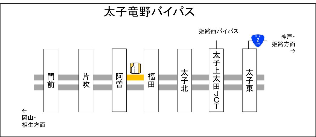 6時50分頃の#事故により、大阪方面行#太子竜野バイパス#福田(101.2kp)付近車線規制を行っています。渋滞情報は(https://jartic.or.jp)をご確認下さい。ライブカメラ画像は事務..