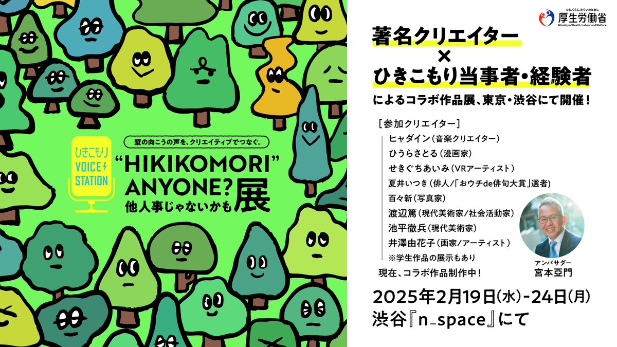 【"HIKIKOMORI"ANYONE?他人事じゃないかも展開催】ひきこもり当事者・経験者×さまざまなジャンルの著名クリエイターで共に「当事者の思い」を伝える作品を制作!・日時:2/19(水)-24(..