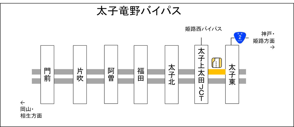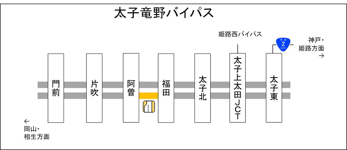 21時30分頃の#事故により、岡山方面行#太子竜野バイパス#福田(101.3kp)付近、車線規制を行っています。渋滞情報は(https://jartic.or.jp)をご確認下さい。ライブカメラ画像は..