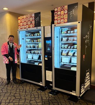 \速報/姫路を代表する地場産品の菓子が購入できる自販機が本日登場姫路駅前のホテル日航姫路2階ロビーで購入できます(キャッシュレスのみ)姫路の銘菓の詰め合わせ官兵衛撰菓と千姫撰菓はパッケージが姫路城仕様..