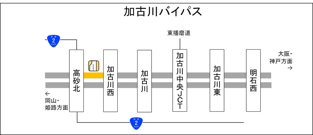 9時00分頃の#事故により、大阪方面行#加古川バイパス#加古川西(75.9kp)付近、車線規制を行っています。渋滞情報は(https://jartic.or.jp)をご確認下さい。ライブカメラ画像は事..