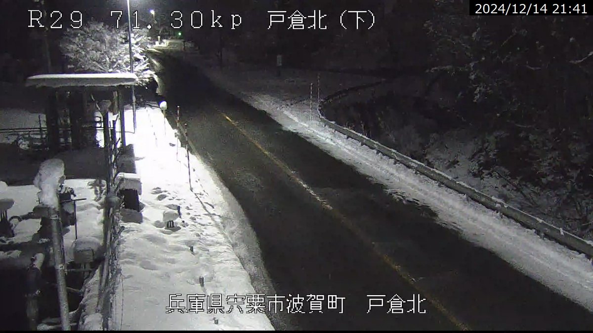#国道29号#凍結の恐れ通行注意*地面が黒く見えている場所でも凍結している場合もあります。冬用タイヤなどを装着して通行ください。#姫路河川国道事務所ライブカメラ画像は事務所HP(https://kkr..