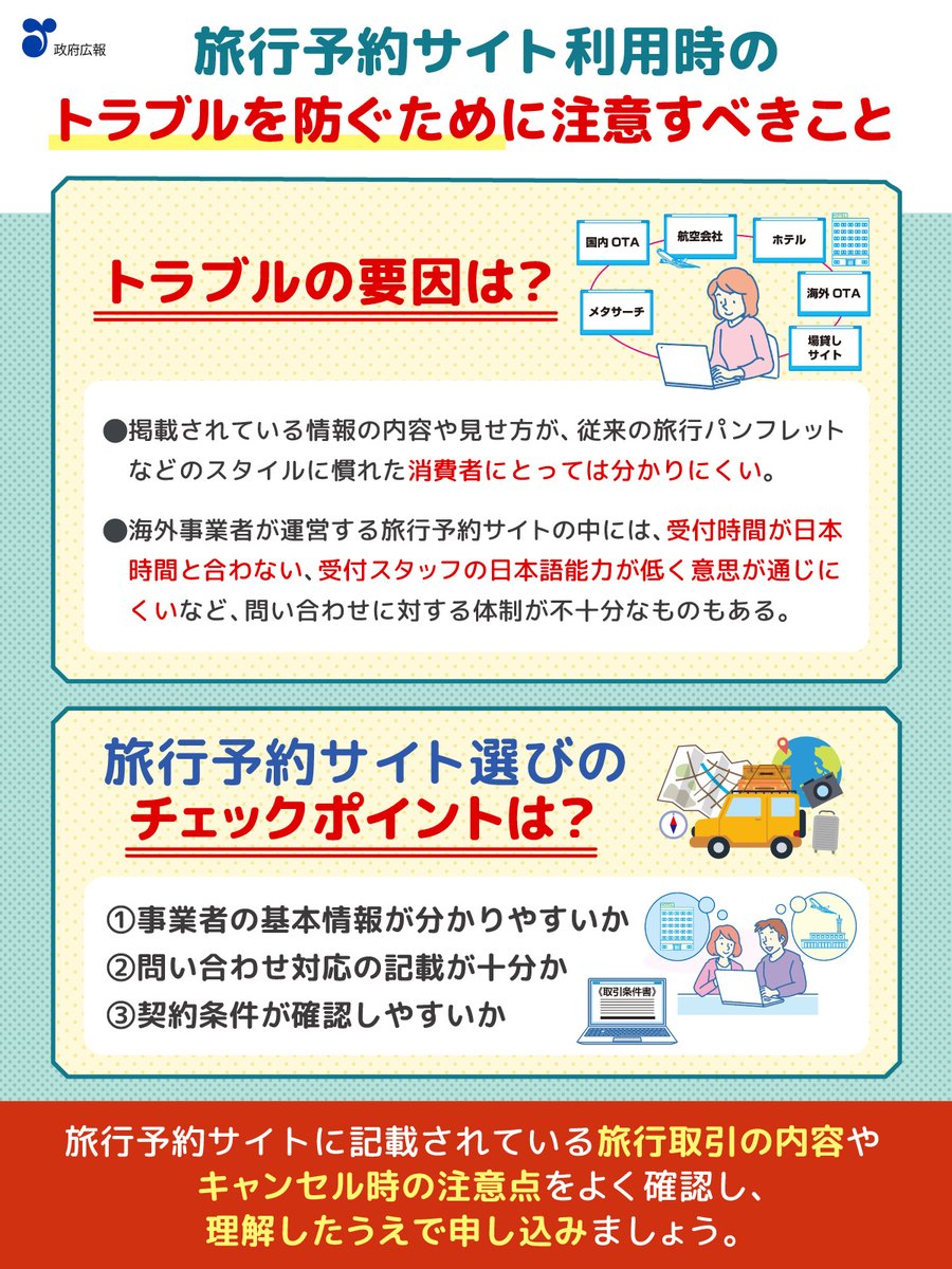 旅行予約サイトでのトラブルに注意キャンセル手数料無料と表示されていたのにキャンセル料を請求された2か月以上先の宿泊予約にもかかわらず、予約当日にキャンセルしようとしたら返金不可と言われたといったトラブ..