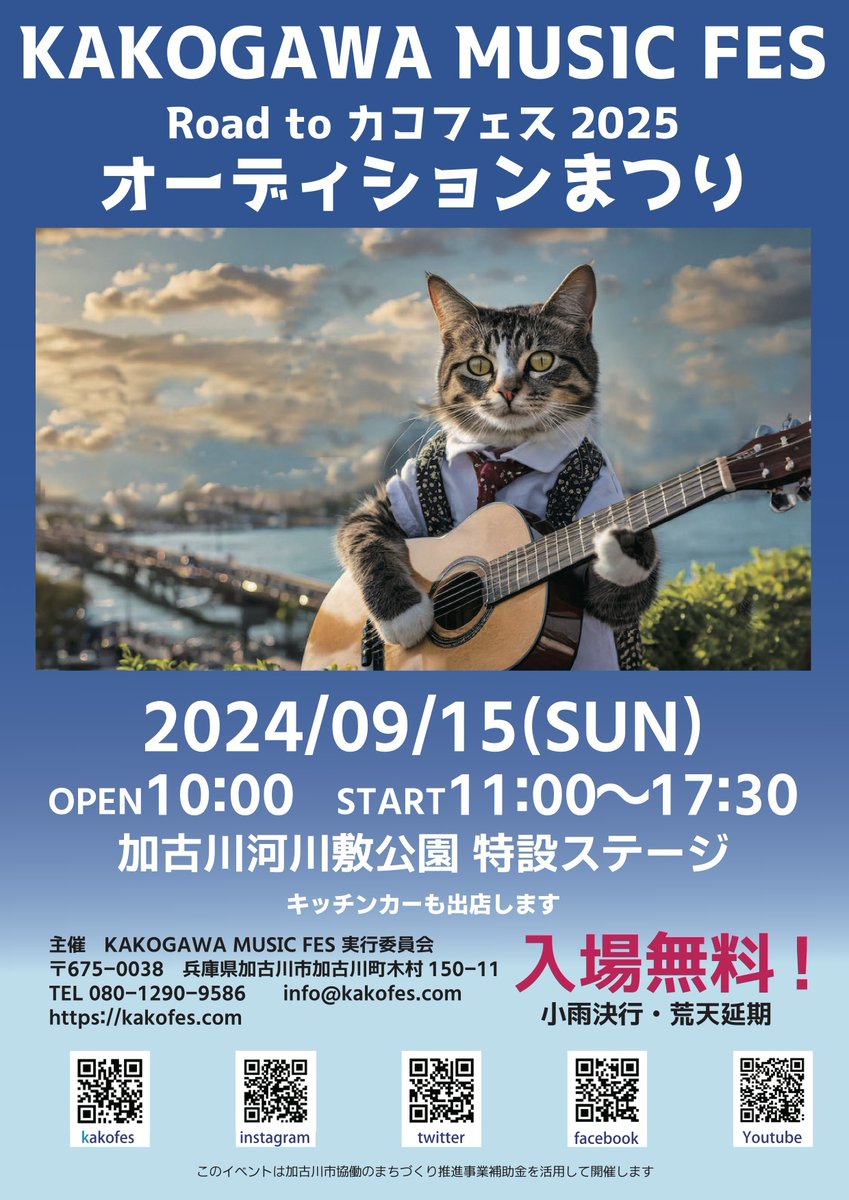 【カコフェス2025オーディションまつりが開催されます】加古川の河川敷でかわまちづくりイベントの一環として開催されます!ぜひご参加ください!日時:9月15日(日)11:00~17:30(OPEN10:..