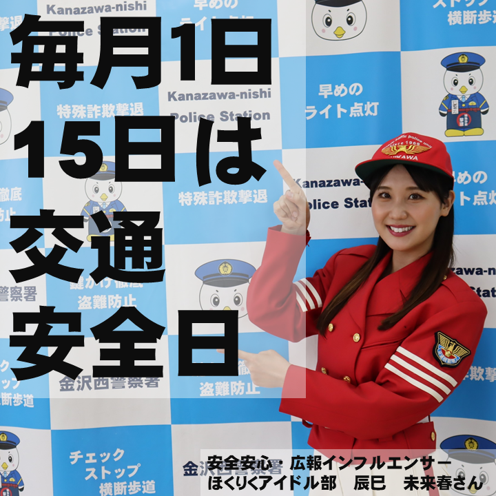 /毎月1日、15日は#交通安全日\9月は夕暮れどきの事故に注意!日が暮れる時間が日に日に早くなる季節ドライバーの皆さんは早めのライトを歩行者の皆さんは反射材を身につけてね#金沢西警察署#ライトで照らせ..