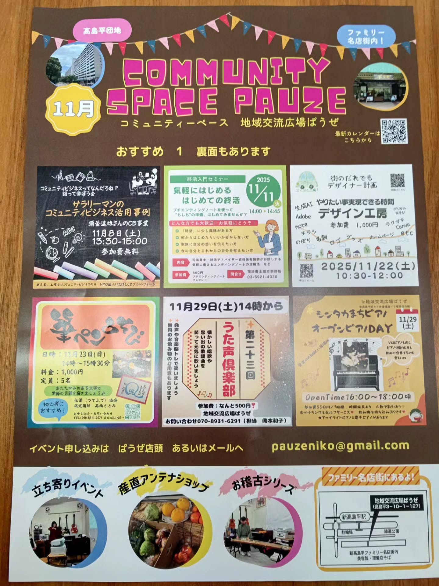 11月も地域交流ひろばのぱうぜpauze2023ではイベント盛りだくさんです✨ぜひお気軽にお立ち寄りください😄#高島平#新高島平ファミリー名店街#新高島平駅#地域交流広場ぱうぜ#ぱうぜ#コミュニティー..