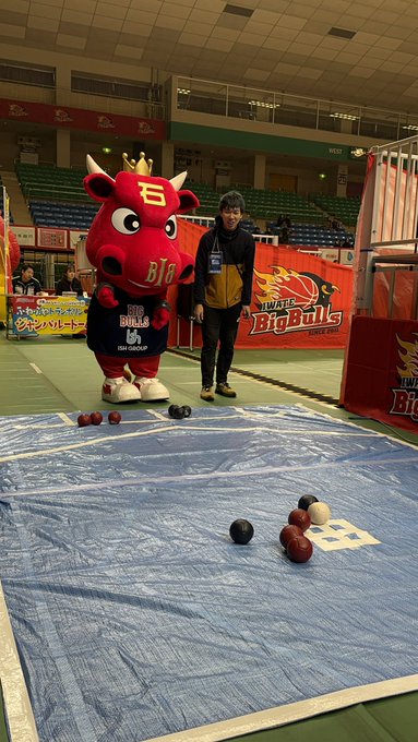 【GAMEDAY】会場奥では#ボッチャが体験できます!ぶるぞーもやってみましたよどんどん投げるぶるぞー最後は褒めていただきましたぜひみなさんも体験してみてください!#岩手ビッグブルズ#bigbulls..