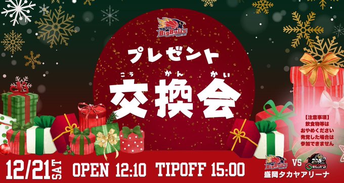 /12/21,22岐阜戦クリスマスプレゼント交換会\プレゼント交換会に下記の選手の参加が決定いたしました#関屋心選手#菅俊男選手#蒔苗勇人選手#横川俊樹選手選手はサイン入り私物を持ってプレゼント交換会..