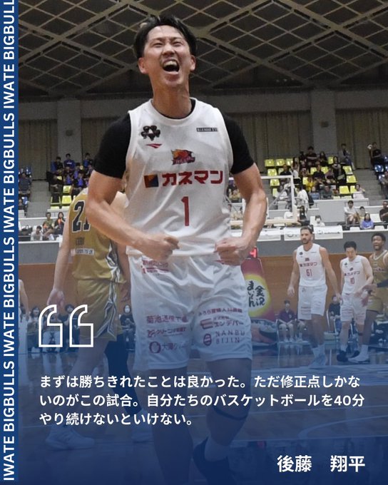 ◤コメント◢9/28(土)#後藤翔平選手コメントまずは勝ちきれたことは良かった。ただ修正点しかないのがこの試合。自分たちのバスケットボールを40分やり続けないといけない。#岩手ビッグブルズ#金沢武士団..