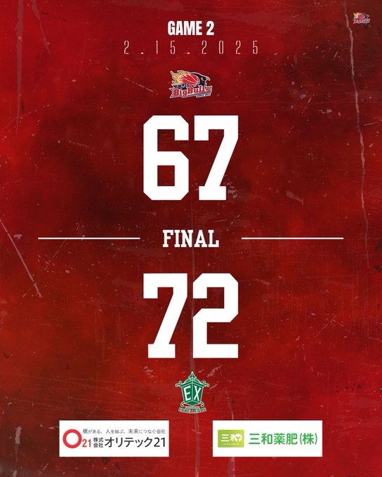 ◤REPORT◢2025.2.15(土)vs#横浜エクセレンス試合コメントを更新#鈴木裕紀HC#山際爽吾選手こちらからhttps://bigbulls.jp/game/?YMD=20250215&am..