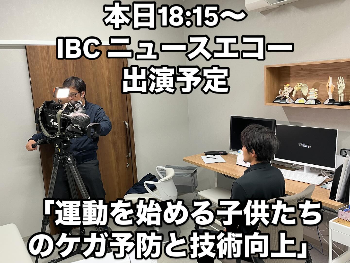 本日IBC18:15-18:55オンエアのニュースエコー内のスポーツIに院長がインタビューで出演します。「運動を始める子供たちのケガ予防と技術向上」についてBlue8君塚トレーナーと共に話をしています..