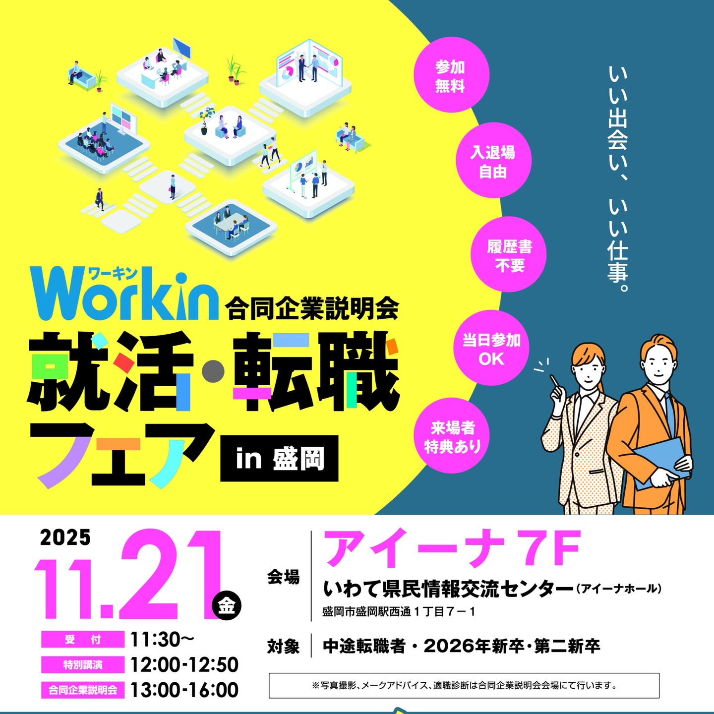 【説明会参加情報】Workinの合同企業説明会「就活・転職フェアin盛岡」に参加します。警察官や警察事務の..
