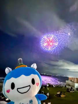 10月18日(土)は「ふじさわ江の島花火大会」だったよ ふじキュン♡もワクワクしながら見に行ってきたキュン 打ち上げ数約1,000発7年ぶりに復活した二尺玉もとーっても綺麗で圧巻だったよ みんなの楽しい思い出も増えたかな~?