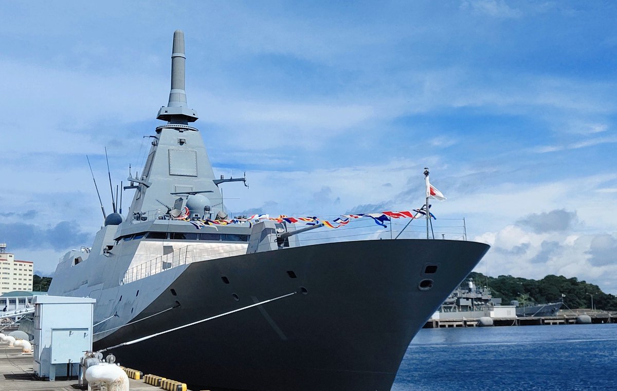 こんにちは 昨日の #海の日 多くの見学者が来られていました 横須賀では梅雨の晴れ間、#もがみ の満艦飾がとても綺麗でした 本日もよろしくお願いいたします どうぞ良い一日に 遠泳ご見学の皆様、どうぞ足元お気をつけて
