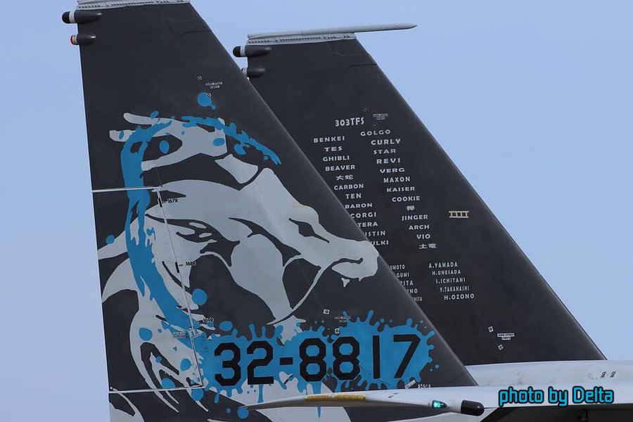 鋭い質問をいただいたので回答しますよ特別塗装機の尾翼内側の細かい文字は、飛行隊のドライバーのTACネームと整備員など全クルーの名前でした。飛行隊は家族!と話すTACネーム「ゴルゴ」隊長の鶴の一声だった..