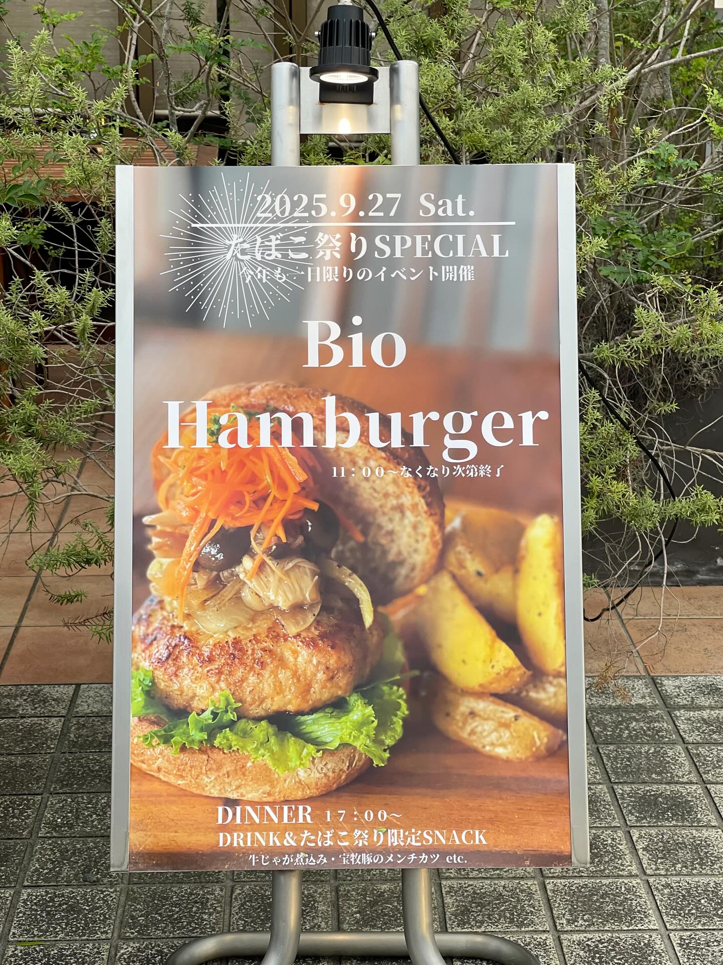 おはようございます☀秋晴れの秦野です。季節の移ろいを感じる今日この頃、いかがお過ごしでしょうか。Bio食堂、9月27日の秦野たばこ祭りの日に、年に1日限定販売「Bioバーガー」を店頭にて販売いたします..