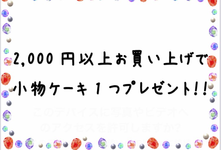週末フェア今回は2000円以上お買い上げで小物ケーキプレゼント!土日のみクレープも対象です!(クレープは売り切れ次第終了)ご来店お待ちしております!