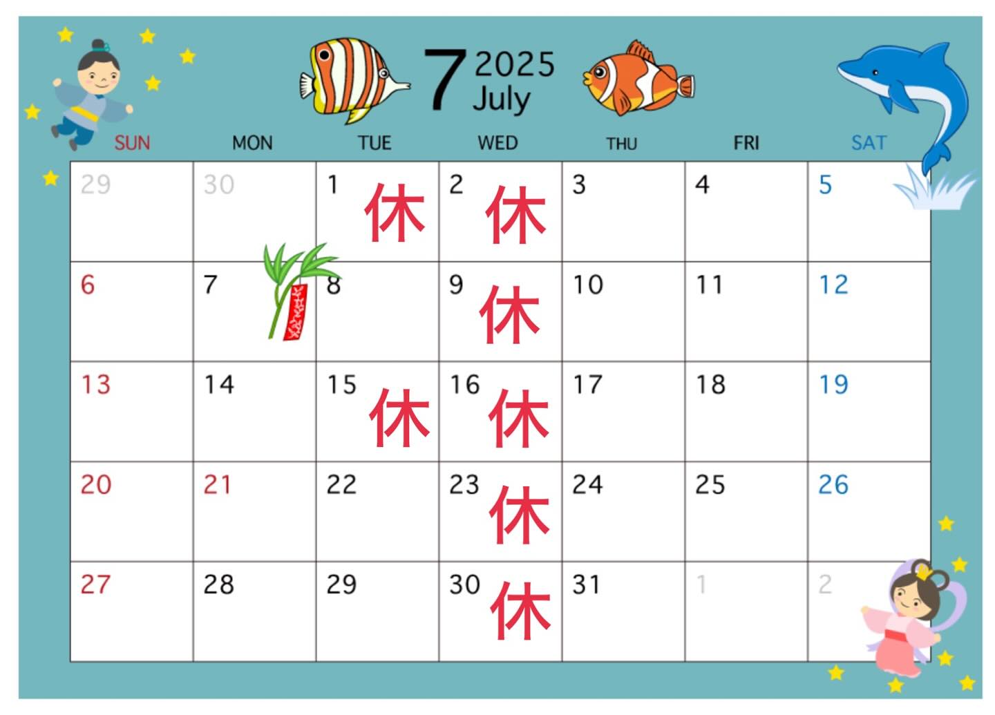 7月営業カレンダーです今月は臨時休業なーし営業時間11ー19時月曜は18時閉店閉店30分前お客様いない場合..