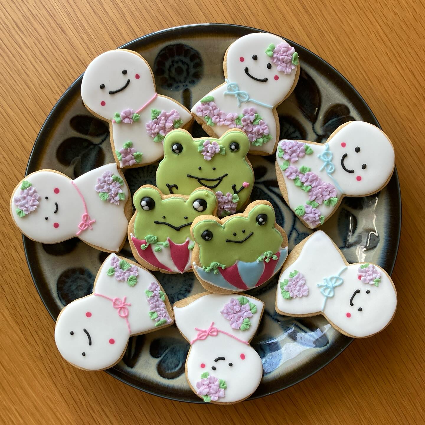 梅雨のような天気と思ったら明日は急激に暑くなるらしい熱中症に気をつけよう🚰#梅雨かな#カエルの歌#てるてる坊主#アイシングクッキー#アイシングクッキー講師#和菓子びより#和菓子教室#製菓衛生師#秦野市..