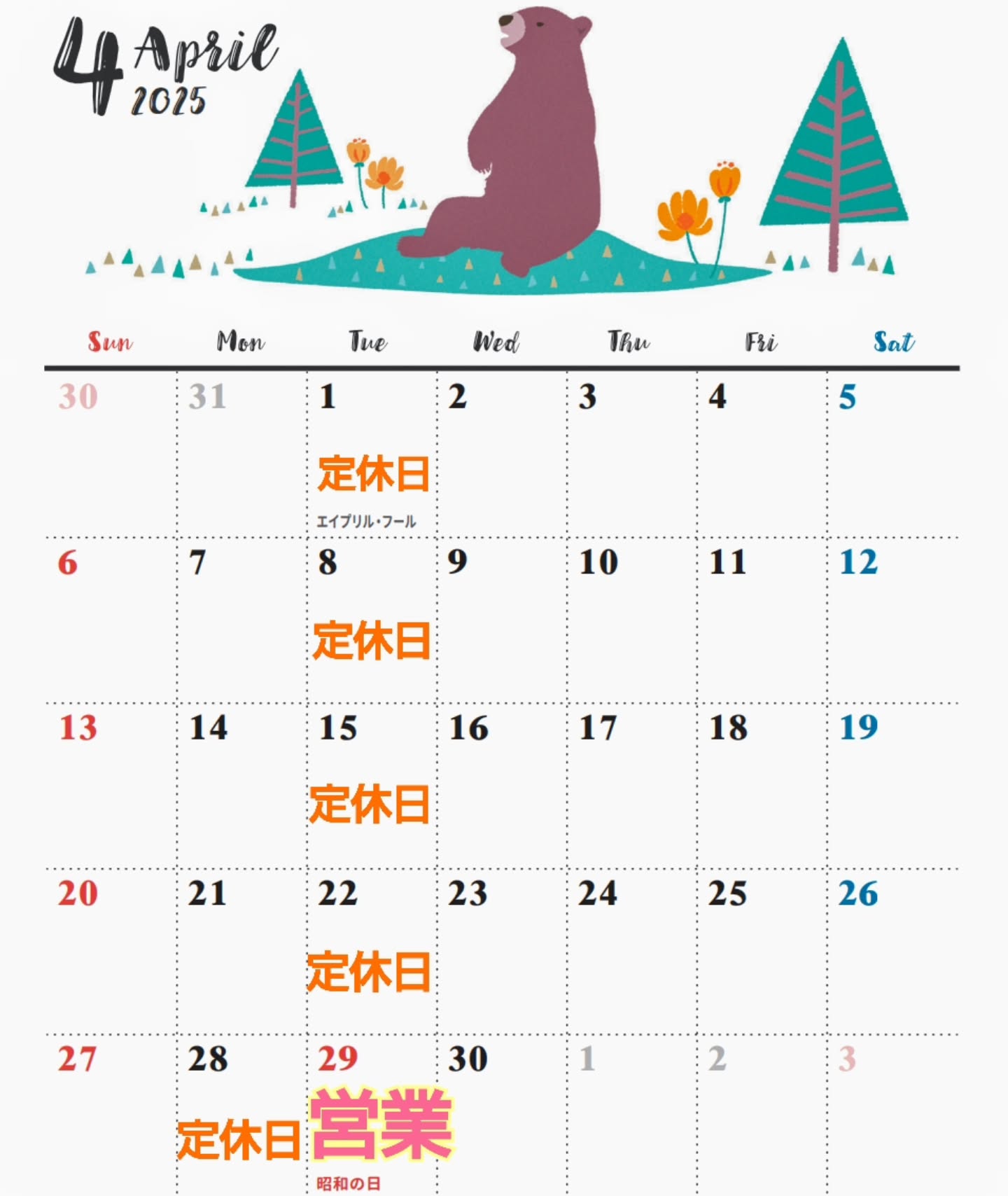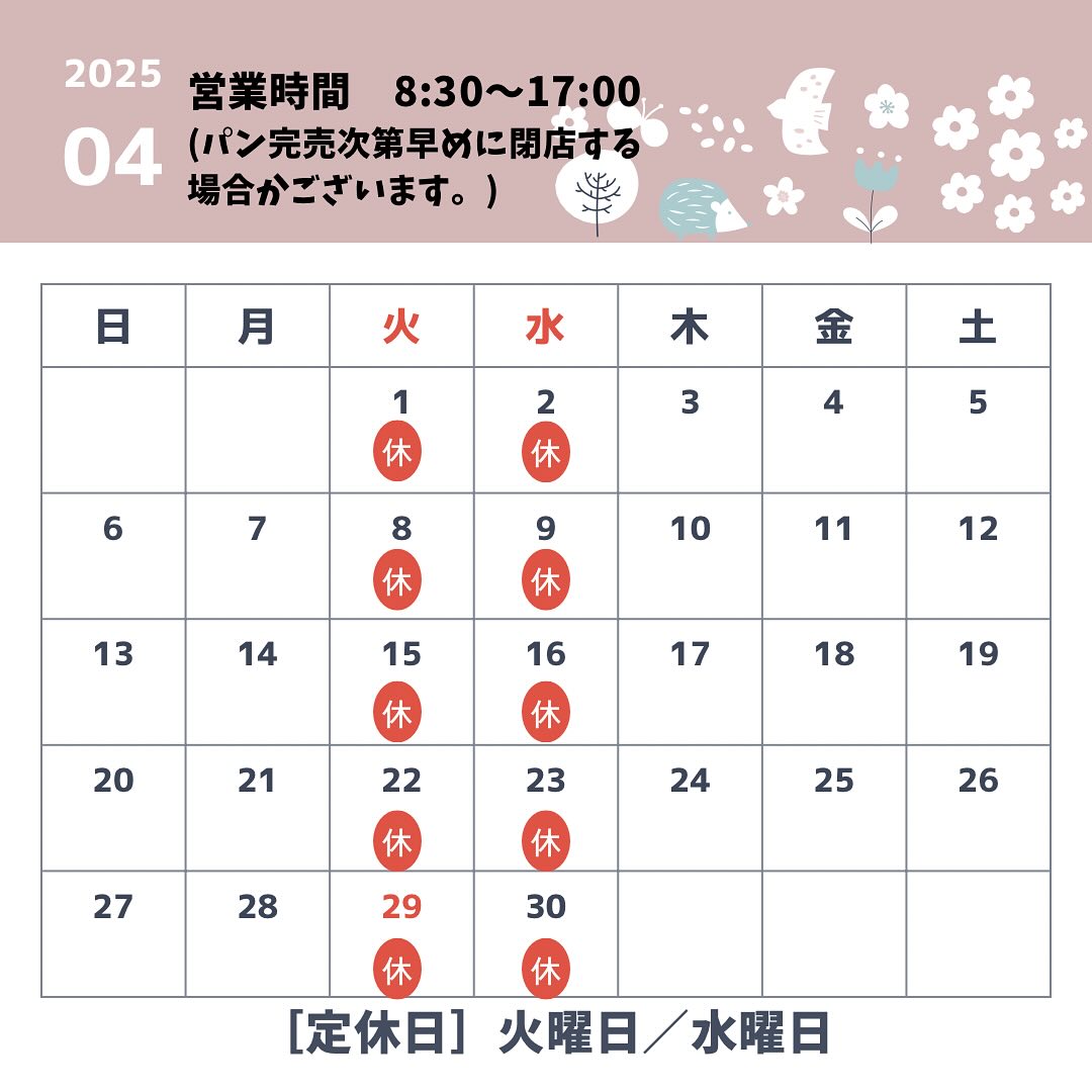 2025.4.2(水)皆様、こんにちは💕いつも応援ありがとうございます😊今年ももう4月💦次回のカフェ&パン販売は4月12日土曜日 10:00〜18:00宜しくお願いします🙇♀️✨2025年度✨営業日..