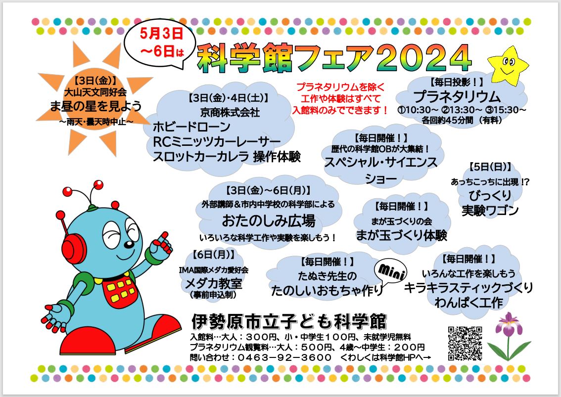 【伊勢原市からのお知らせ・科学館フェア2024を開催】5/3(金)~5/6(月)。サイエンスショーや工作教室を特別開催します。詳しくはホームページへ www.city.isehara.kanagawa..