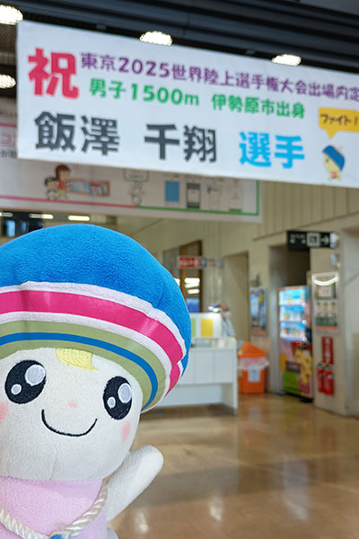 クルリンだよ☆#伊勢原市出身の陸上競技#飯澤千翔選手が、9/13(土)から始まる、東京2025世界陸上1500m走の日本代表に選出されたんだよ市役所1階市民ホールと伊勢原駅自由通路内に応援看板を設置し..