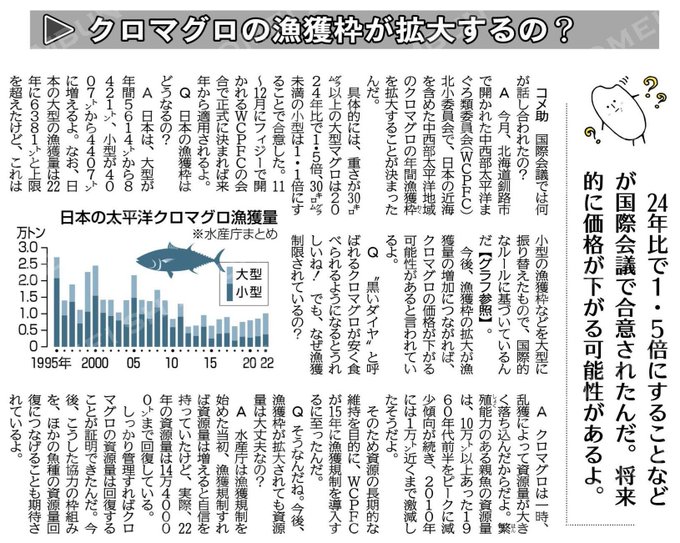 (コメ助のここが知りたい!)クロマグロの漁獲枠が拡大するの? #公明新聞電子版 2024年07月29日付 https://komei.or.jp/newspaper-app/