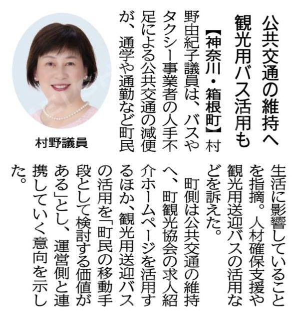 (定例会ダイジェスト)公共交通の維持へ観光用バス活用も/神奈川・箱根町#公明新聞電子版2024年06月23日付https://komei.or.jp/newspaper-app/