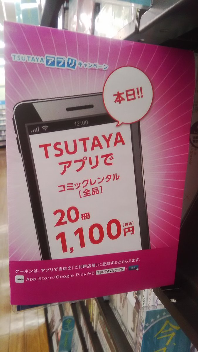 /TSUTAYAアプリ✨でコミックレンタル[全品]20冊1,100円😊👏\本日~31日(日)まで🌸是非ご利用ください☺️#TSUTAYA相模大野店 #コミックレンタル#TSUTAYAアプリ000