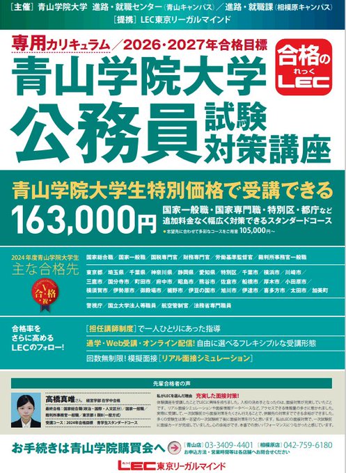 #LEC#公務員講座青学生専用の公務員講座、受付中!青山学院大学購買会でお申込みできます各本校で受講相談もできます詳細こちらからhttps://jpn01.safelinks.protection.o..