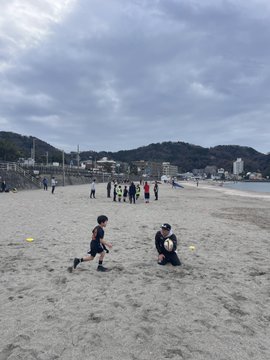 逗子葉山ラグビースクールは逗子海岸。各学年に分かれての練習。タックルや倒れるプレーは砂浜が一番。走れば足腰が鍛えられます。寒い中、よく頑張りました。#逗子#逗子市#葉山#葉山町#逗子葉山#逗子葉山ラグ..