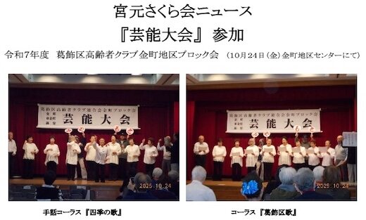 令和7年10月24日(金) 金町地区センター5階ホールで葛飾区高齢者クラブ金町地区ブロック会の「芸能大会」が開催されました。