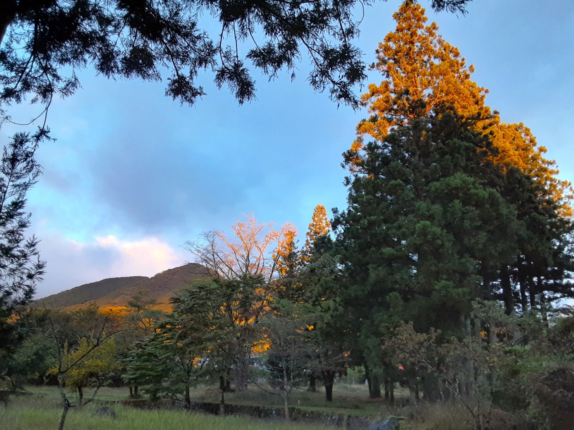 *学園の朝の様子です。朝日に照らされた木々や山が紅黄色に染まり、大変綺麗です。今夜の日光は最低気温は7℃です。明日の朝は6℃まで下がるそうです。日光へお越しの際は、服装選びにお気を付けください。#葛飾..