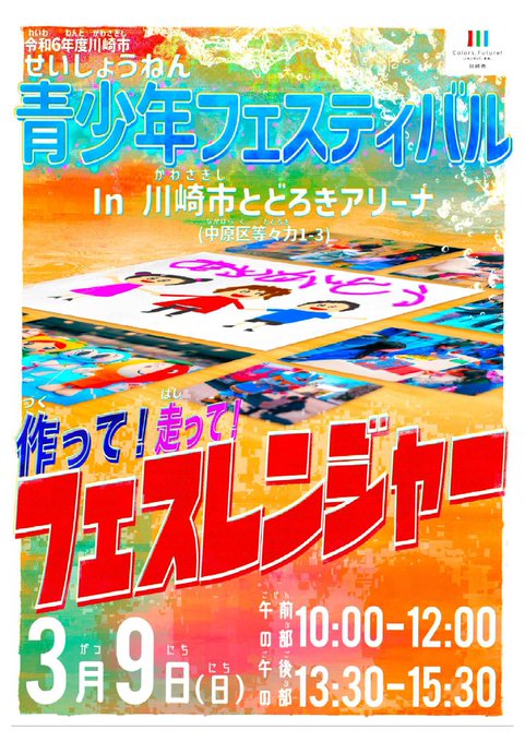 高校生・大学生が企画&運営する#青少年フェスティバル3月9日(日)#とどろきアリーナで開催!今年は「作って!走って!フェスレンジャー」をテーマに、ヒーローショーや工作、体を動かすゲームなどの体験型企画..