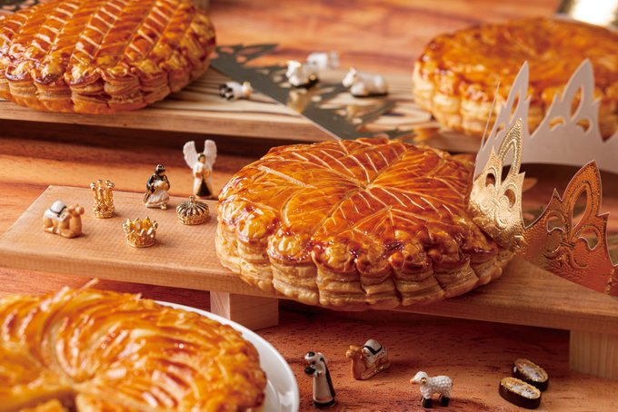 新年を祝うフランスの伝統菓子”ガレット・デ・ロワ”#川崎市#ふるさと納税の#返礼品で大好評開業60周年#川崎日航ホテルパティシエの味紙製の王冠と、新年の幸福をもたらすラッキーアイテム「フェーヴ」をプレ..