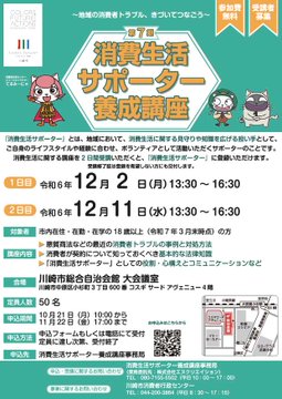 #消費生活サポーター養成講座受講者#募集#地域と#消費者行政センターを結ぶ橋渡し役の#ボランティアとして活動してみませんか?\講座は12/2(月)・11(水)の2日間/地域を消費者トラブルから守りたい..
