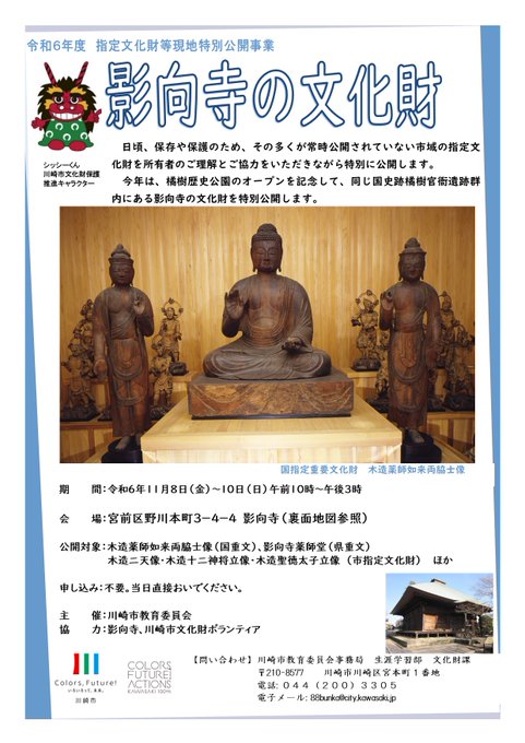 11月4日ラジオ日本の「#マツラジ」(18:30~20:30放送)の、#KAWASAKIシティインフォメーションのコーナーでは、11月8日から10日に#影向寺で行われる#指定文化財等現地特別公開を取り..