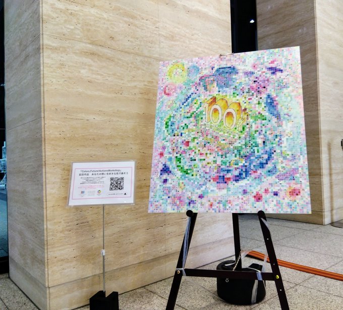 #みんなの川崎祭 本庁舎の入口には、昨年のイベントで皆さんから集めたいろいろな色をタイルアートにした作品を展示中! あなたが描いた色を探してみてくださいね スマホで自分の色を探すこともできます♫ #かわさきいいね