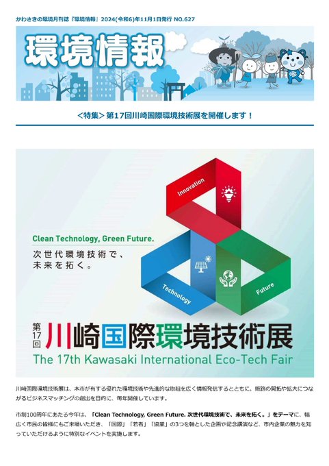 #環境情報627号を発行します!今月は第17回川崎国際環境技術展と第21回川崎国際エコビジネスフォーラムを特集します!今年は市制100周年の特別企画もありますので、ぜひチェックしてください。イベントや..