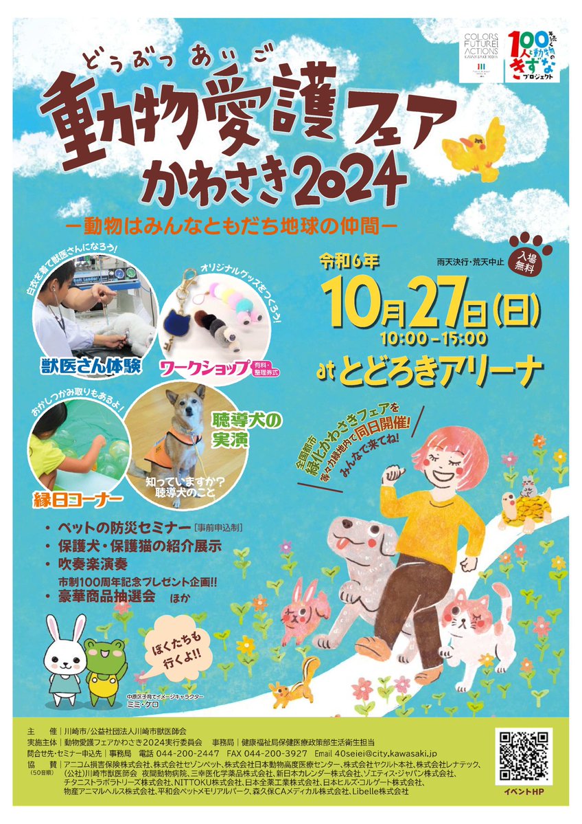 動物愛護フェアかわさき2024開催します#聴導犬の実演、獣医さん体験、キーホルダー作り、ペットの防災に関する展示とセミナーなどイベントが満載#市制100周年記念アニマルグッズプレゼント企画もあるよ10..