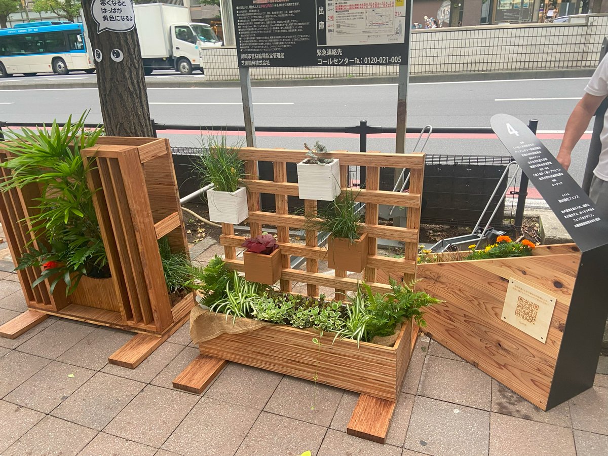 和の緑化フェンス#4和の要素を取り入れ、植栽と木が融合する、ぬくもりのあるフェンスをデザイン。燃えにくくする処理をした木材を使用しています・企画(一社)木の総合文化・ウッドレガシー推進協議会不燃木材外..