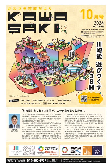 #かわさき市政だより10月号では、#市制100周年秋の4大イベントを特集!みんなの川崎祭Colors,Future!Summit川崎夜市かわむすのおんがえし紙面には広報宣伝部長の#カンタさん(#水溜り..