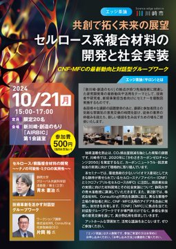 【参加者募集】エッジ茶論「#セルロース系複合材料の開発と社会実装」を10月21日(月)に開催!環境負荷の少ないバイオマス素材として大きな期待が寄せられているセルロースナノファイバー(CNF)とミクロフ..