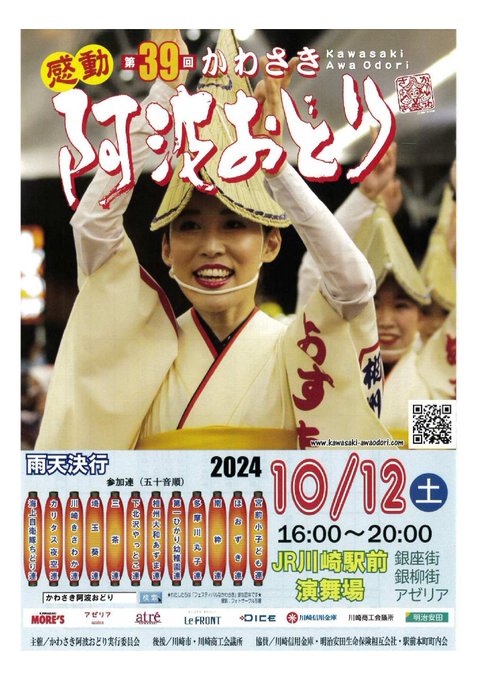 #フェスティバルなかわさき①川崎で阿波おどりが見られる10/12(土)16時~20時秋の風物詩#かわさき#阿波おどりが開催今年で39回目川崎駅東口の銀座街、銀柳街、アゼリアが演舞場です12の参加連が独..